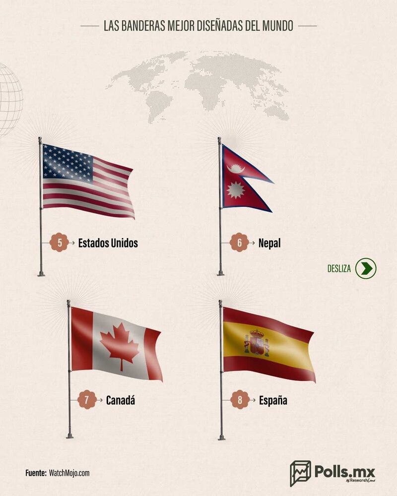Pese a que este 2025 no encabezó la lista, la bandera mexicana logró entrar al ranking realizado por WhatchMojo, donde se posicionó en el veinteavo lugar. Para el ranking, presentado en enero de 2025, se tomaron en cuenta: