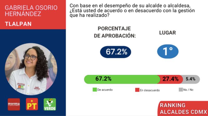 La alcaldesa de Tlalpan, Gabriela Osorio Hernández, se posiciona como la mejor evaluada de la Ciudad de México, de acuerdo con LaEncuesta.