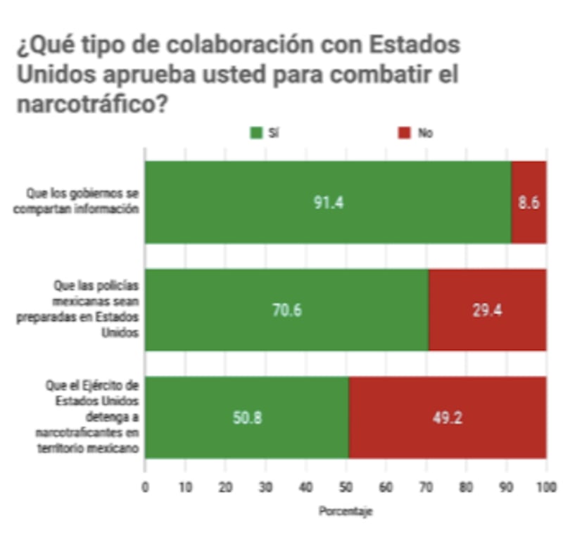 La encuesta también profundizó en los tipos de colaboración con EUA que la ciudadanía aprobaría para combatir el narcotráfico.