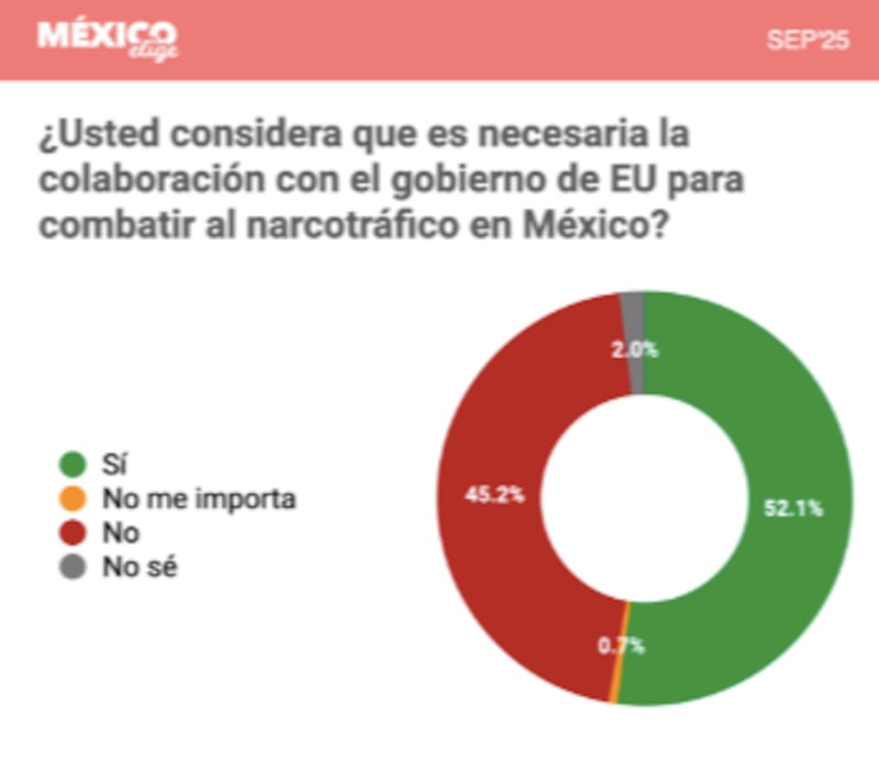 Al preguntar: “¿Usted considera que es necesaria la colaboración con el gobierno de EUA para combatir al narcotráfico en México?”, el 52.1% de los encuestados respondió que “Sí”.